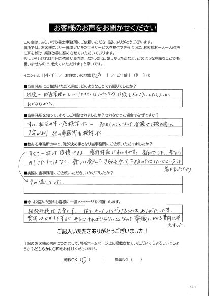 M・T様は「最初は不安でしたが、すべての手続きをお任せできて本当に助かりました」と安心されていました。